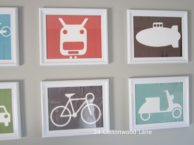 Next we have this art wall 24 Cottonwood Lane made for her nursery. You'll never guess how she came about getting these images.